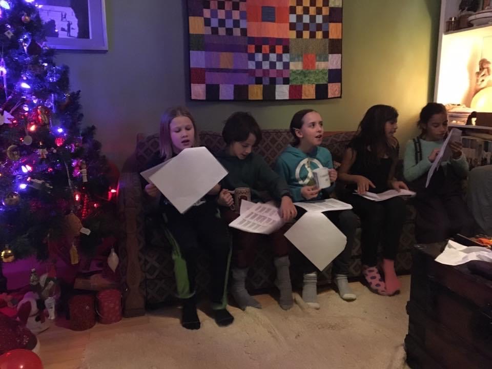 We arrive at the neighbours’ home where we’re planning to gather and do a bit of “practice” before heading out door to door. And it’s so awesome. These neighbours have printed out sheets of lyrics and Carla (a Portuguese mom) and I quickly take the lead. Now we live in a very middle-class city neighbourhood so it’s dense and the houses are small. We have packed about a dozen adults and 8 or so kids into the little living area and everyone is singing and laughing. At some point we decide we’re “ready” and so we meander out into the quiet, snow-covered streets of Corso Italia, knocking on doors and singing for people. Some of these neighbours have lived here for years, since Carla was a little girl. Others are recent transplants – many with small children. And it’s lovely. But the kids start getting cold and someone has to go to the bathroom… but nobody wants to wrap it up.