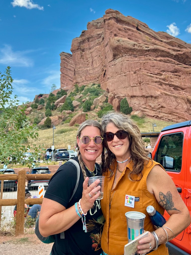 It was the third and final night of Brandi Carlile’s annual Red Rocks concert series: early September, and the perfect late summer evening with a full moon rising. Brandi’s fan club, known as The Bramily, were gathered in community: singalongs, sharing snacks, swapping swag and stories. Anyone who follows Brandi could drop into that tailgate and feel held and included. After experiencing some of that magical community the last two days during my annual pilgrimage from Toronto to Colorado, this was my first time flying solo. I opted to take an inexpensive UBER, so I didn’t have to worry about driving post-concert and rolled up with my insulated bag of beverages and snacks.
